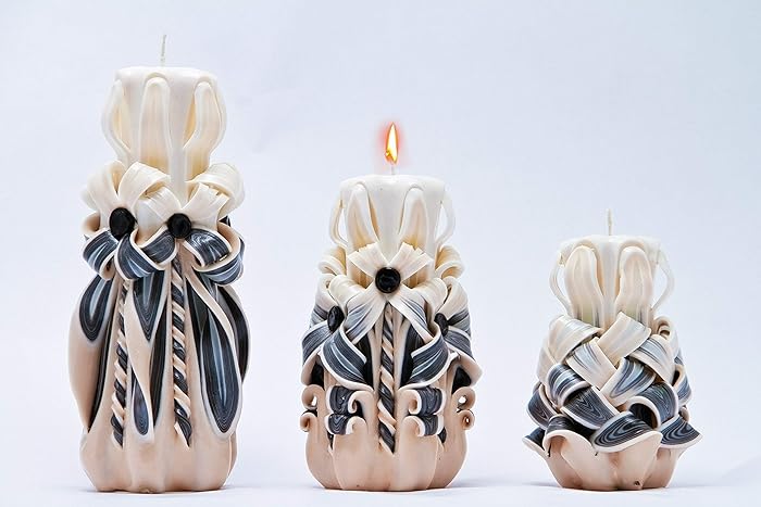 Amazoncom Smallmiddlelarge Carved Candles Candles Gift Set