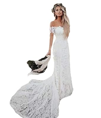 Dressesonline Womens Off The Shoulder Lace Boho Wedding Dress Long