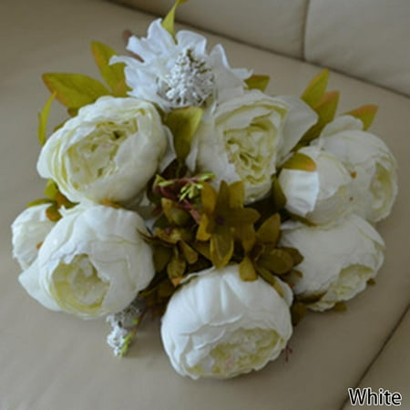 Kaboer Vintage 13 Heads Artificial Peony Bouquet Fake Silk Flowers