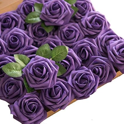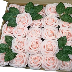 Febou Artificial Flowers 50pcs Real Touch Artificial Foam Roses