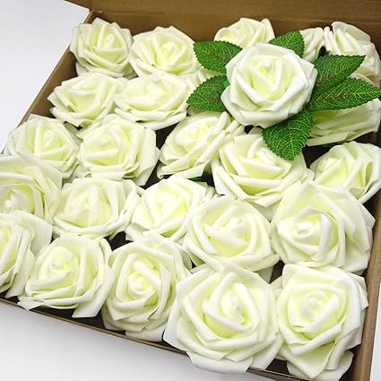 100 Pcs Artificial Flowers Ivory Roses Real Looking Fake Roses Diy