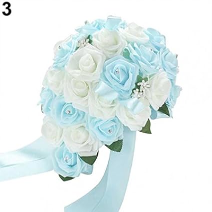 Vlovelife Mix White Light Blue Wedding Bouquet Bridal Bridesmaid