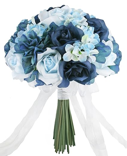 Artificial Flowers Navy Blue Ivory Light Blue Foam Rose Brides